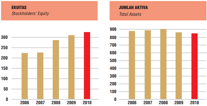 Jumlah Aktiva relatif tidak berubah karena Perseroan tidak melakukan investasi besar di tahun 2009. Aktiva Lancar meningkat terutama karena naiknya nilai persediaan akibat resesi global, sedangkan Aktiva Tidak Lancar turun seiring dengan naiknya akumulasi penyusutan aktiva tetap. Upaya menurunkan umur piutang telah dan sedang dilakukan, dan Manajemen berkeyakinan bahwa seluruh piutang dapat tertagih.